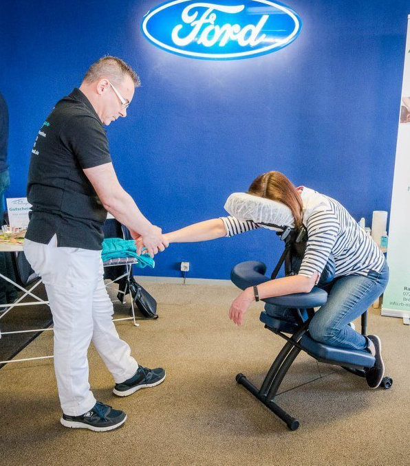 Verwöhnen Sie Ihre Gäste, Kunden und natürlich auch sich selbst mit einer besonderen Atraktion, einer kurzen aber intensiven Entspannungsmassage auf dem mobilen Massagestuhl.